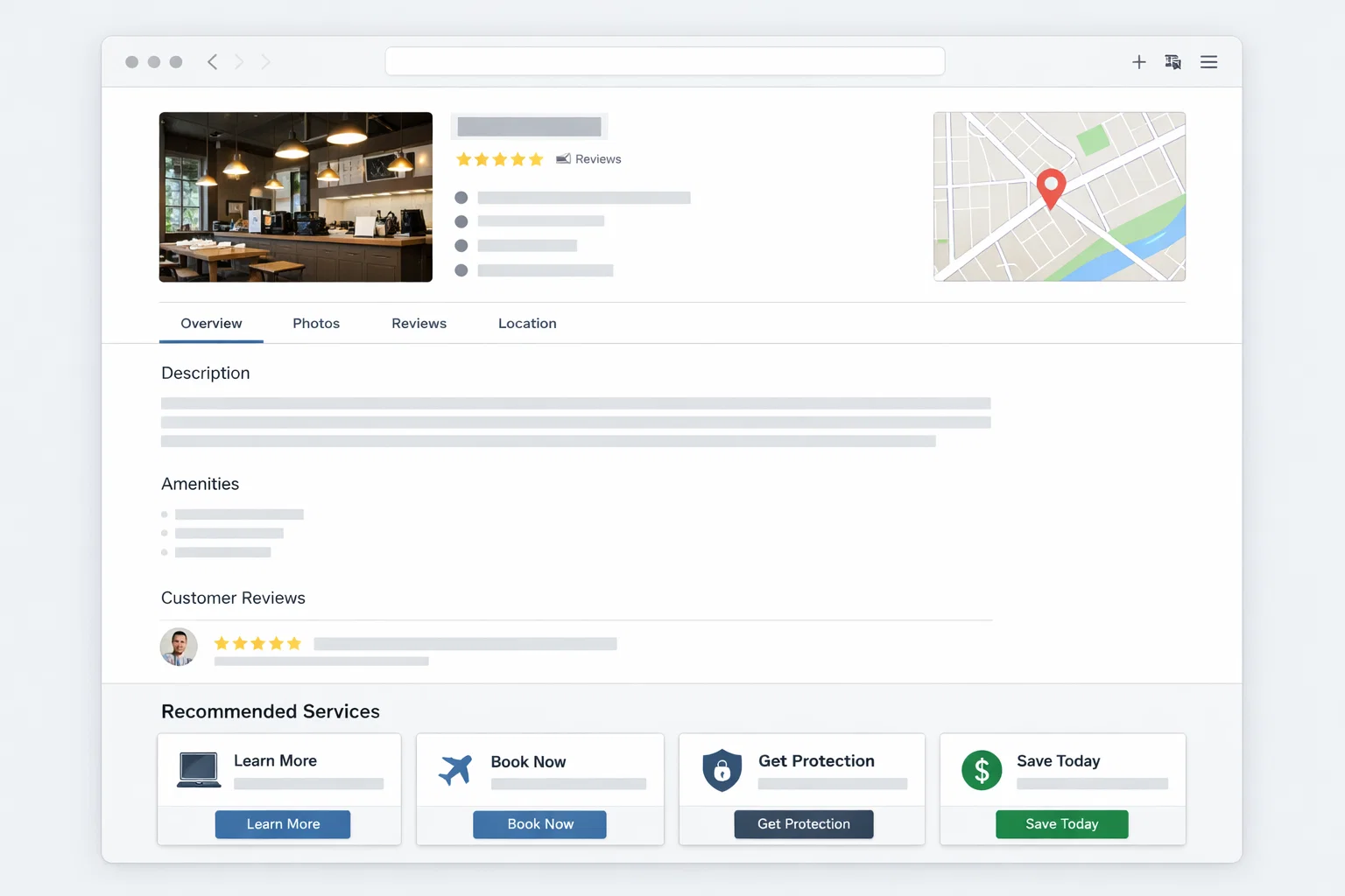 On listing detail pages, affiliate links can appear as optional actions that help users complete a task, such as booking, purchasing, comparing, or signing up for a related service. This placement works well because users are already focused on a specific decision.