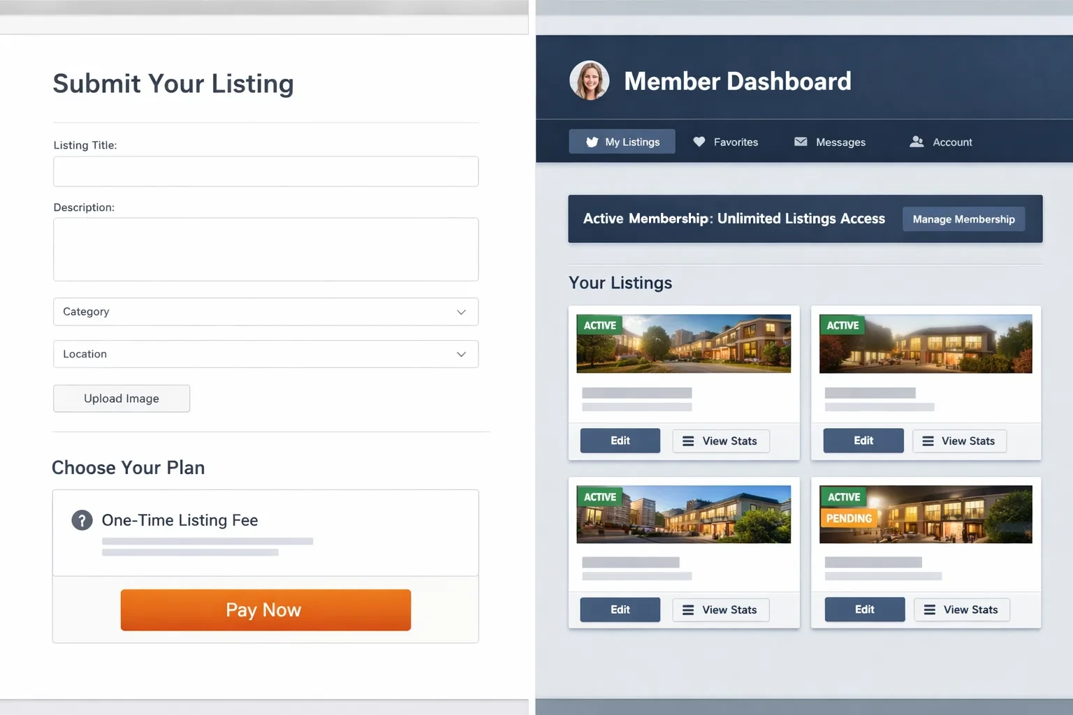 This approach works well for simple directories where listings do not require ongoing management. It is easy to understand and reduces friction for users who prefer not to commit to subscriptions.