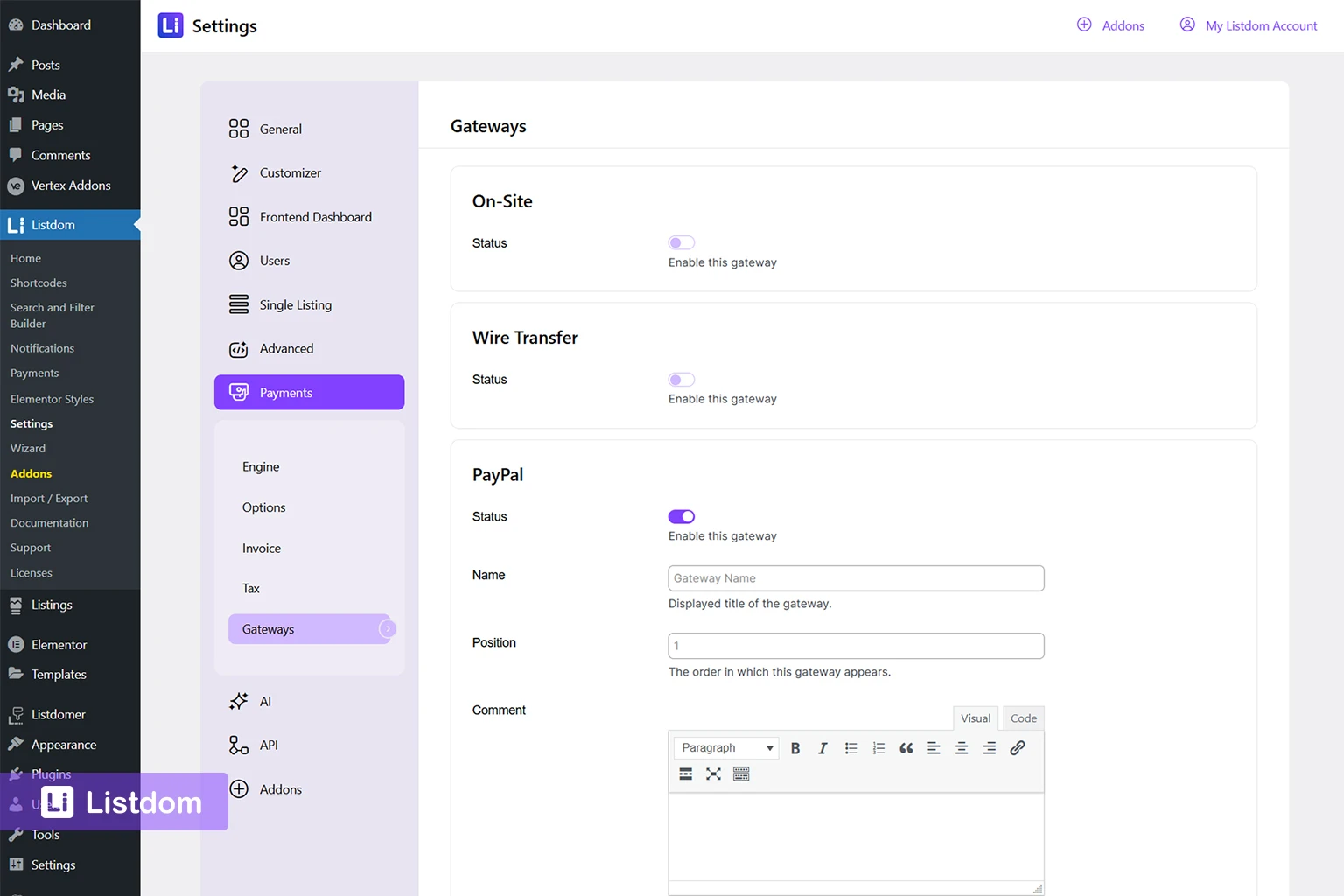 Listdom → Settings → Payments