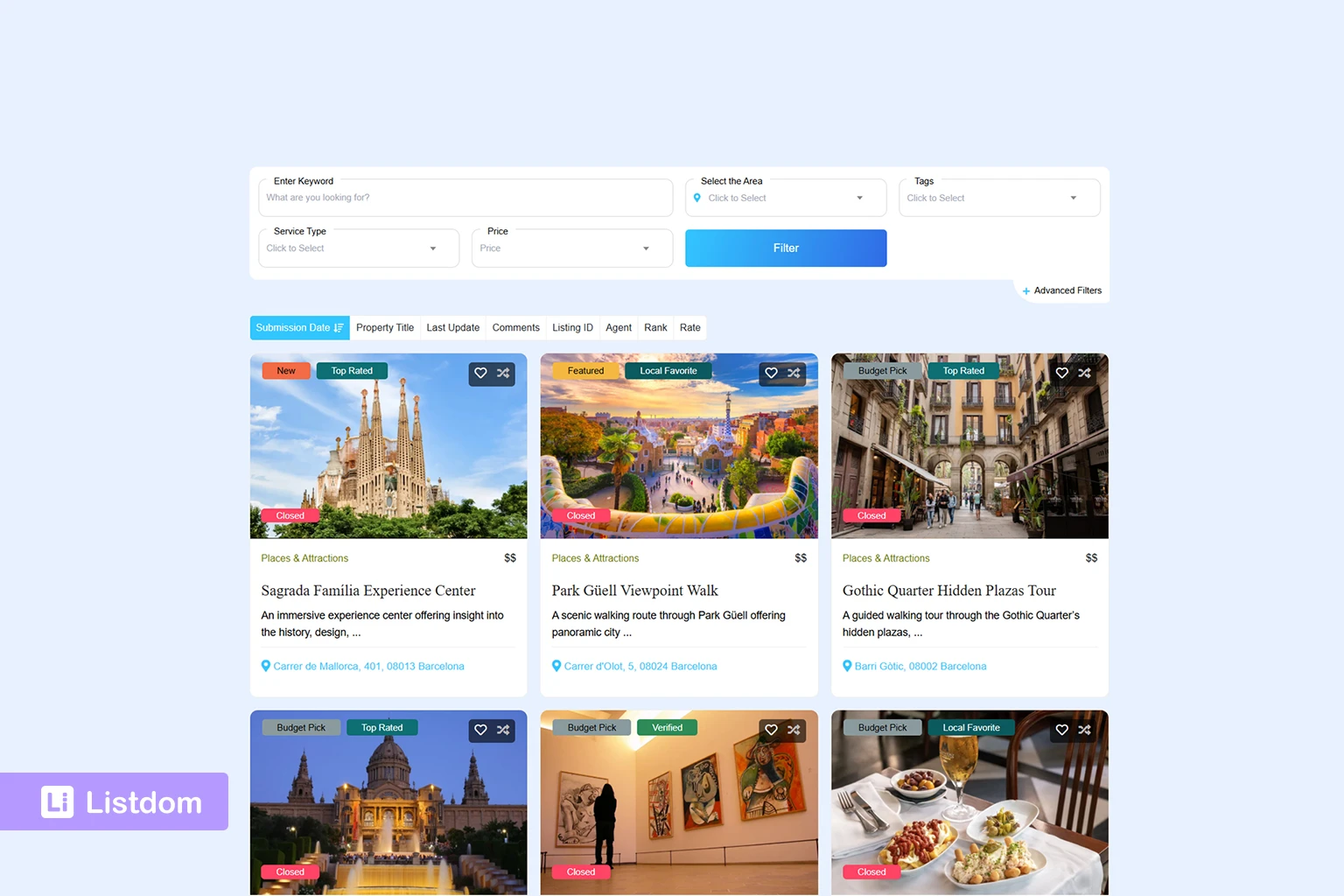 Listdom is designed for this kind of experience. Its documentation describes a dedicated search and filter builder where you can create forms with different combinations of fields, decide how the results appear, and publish those forms wherever they make sense in the front end.
