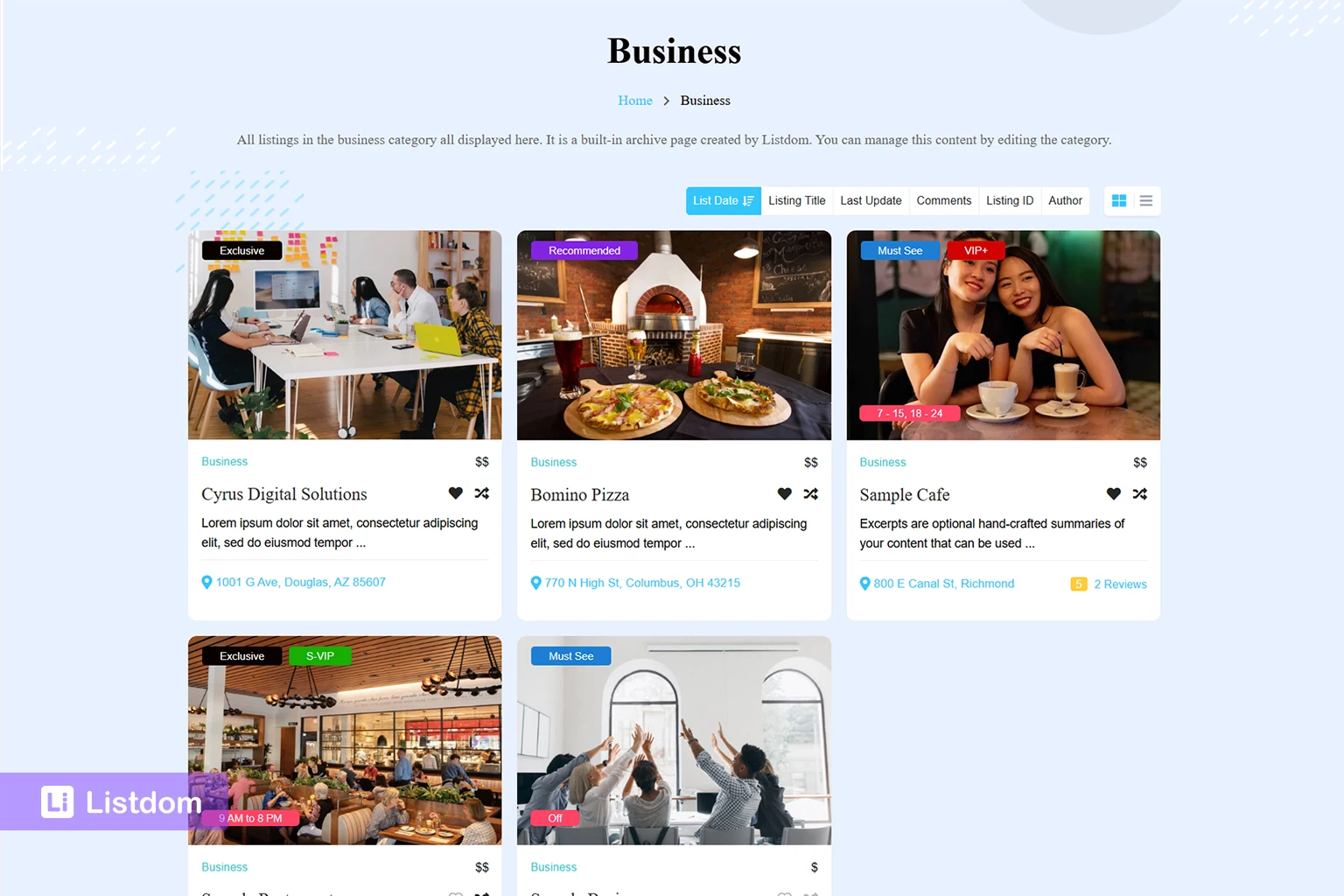 - containing a Listdom shortcode