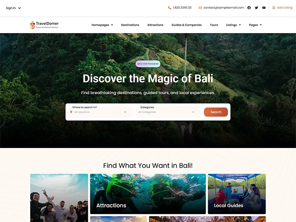 - Travel directory demo: for destinations, hotels, tours, attractions, and experiences. See live demo.